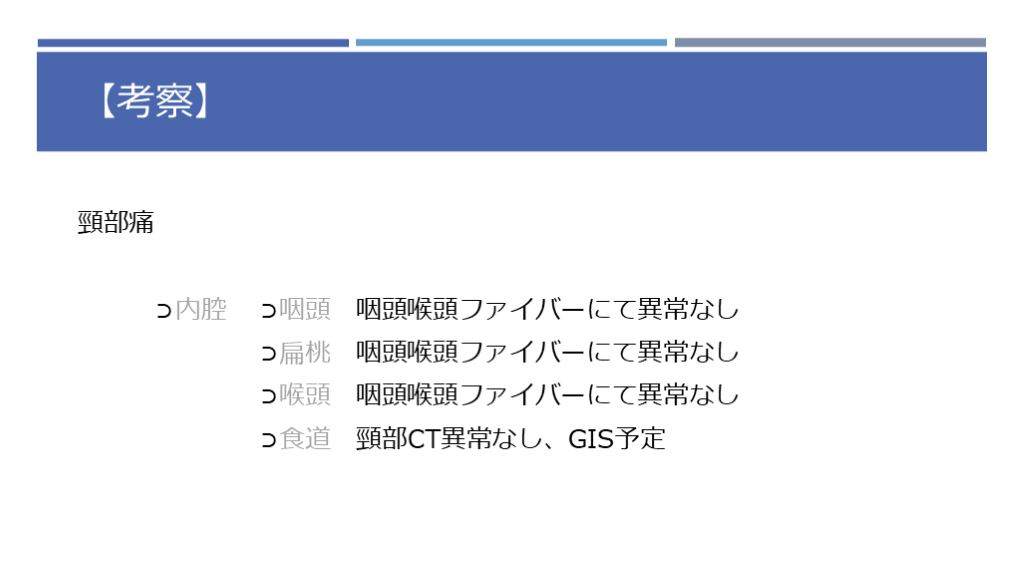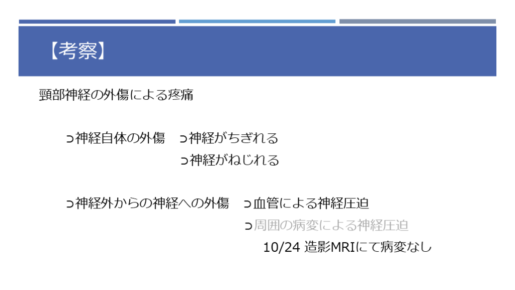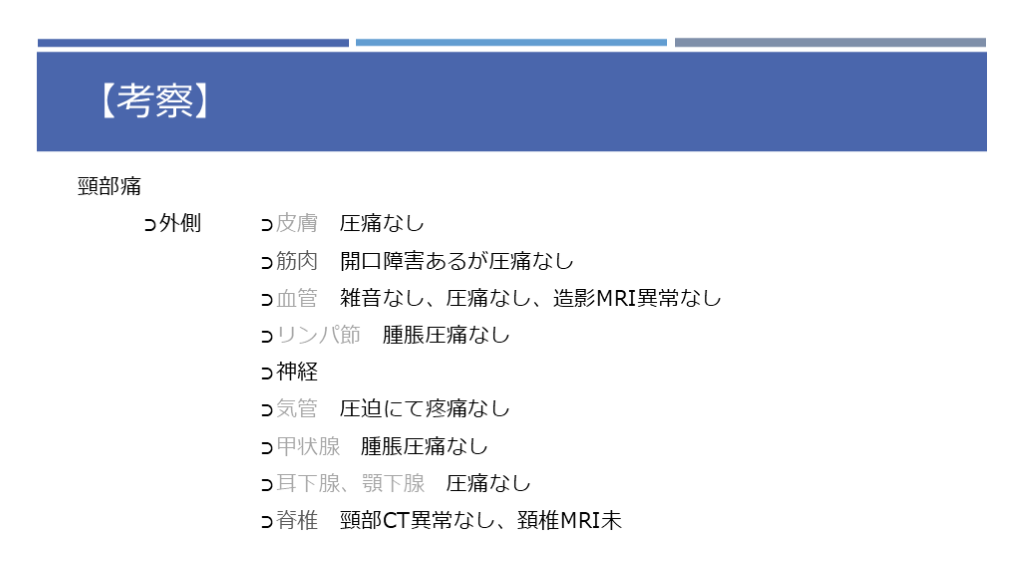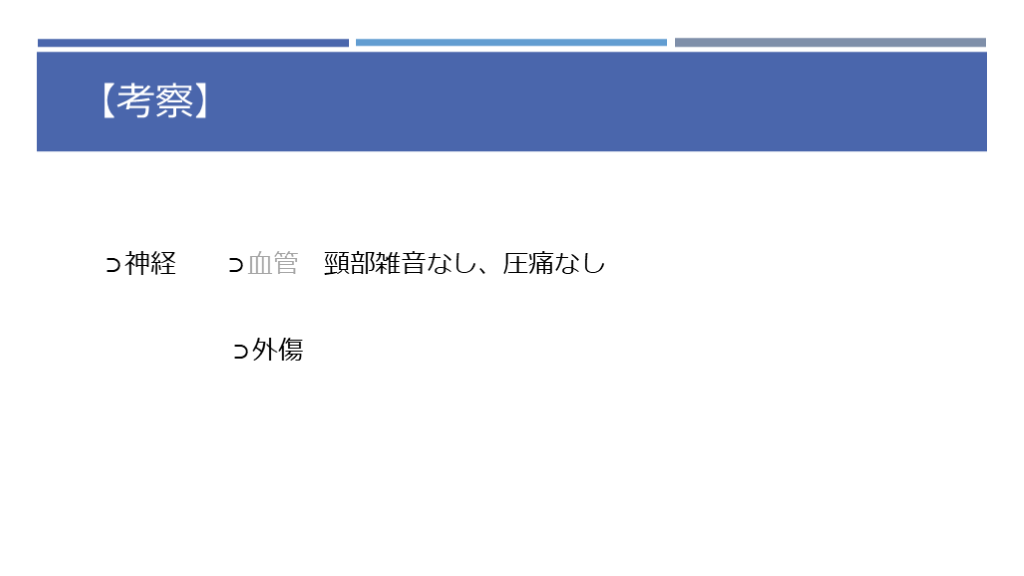 ⊃脊椎 頸部CT異常なし、頚椎MRI未 【考察】