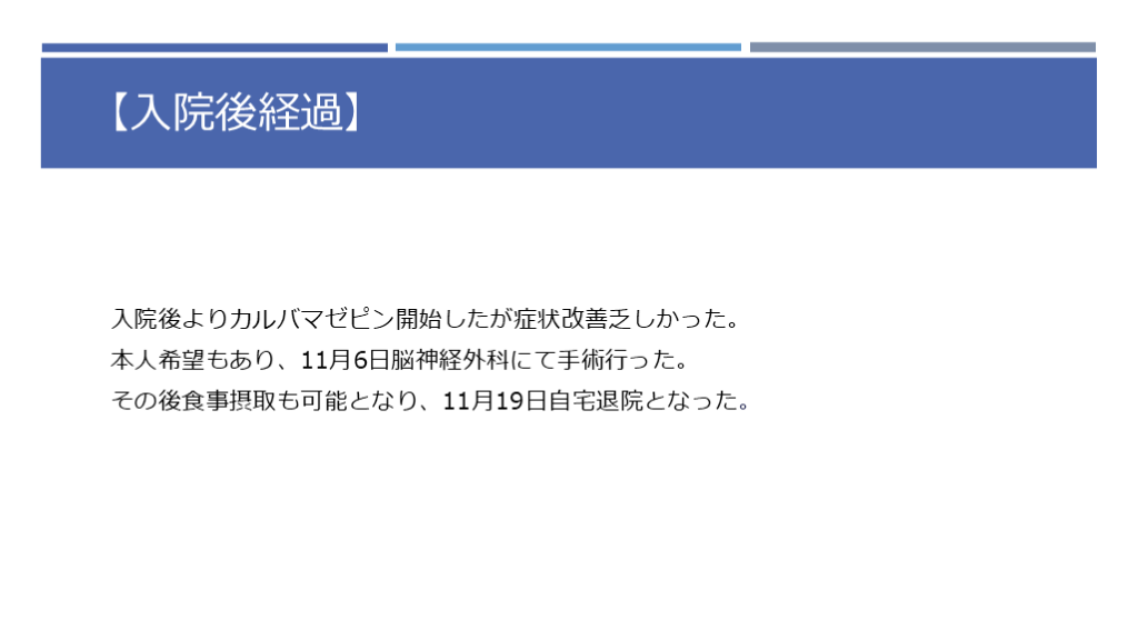 その後も咽頭痛悪化あり、水も飲むことできず、10/22脳神経内科、当科を受診しました。
