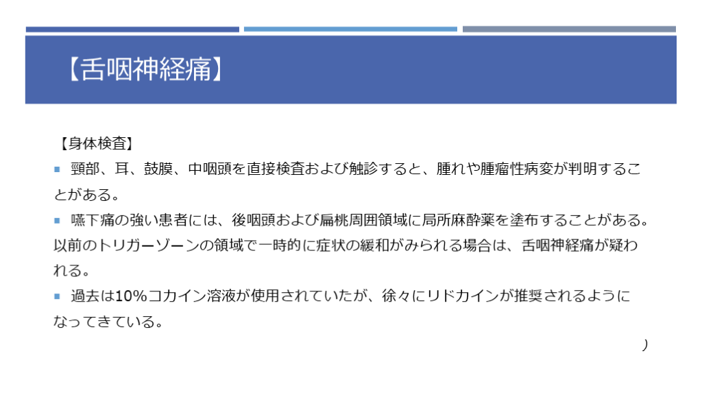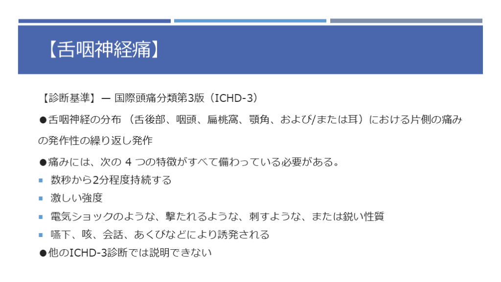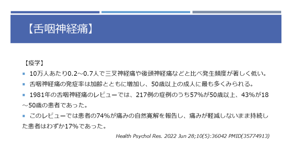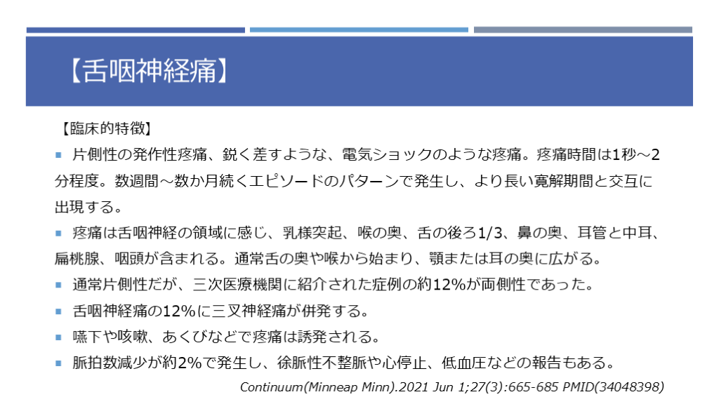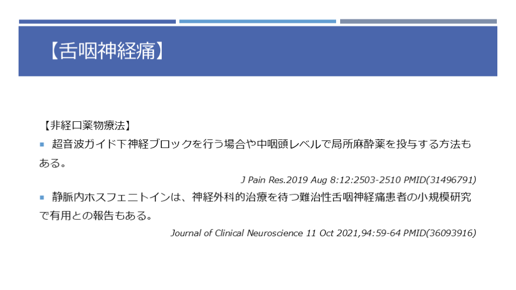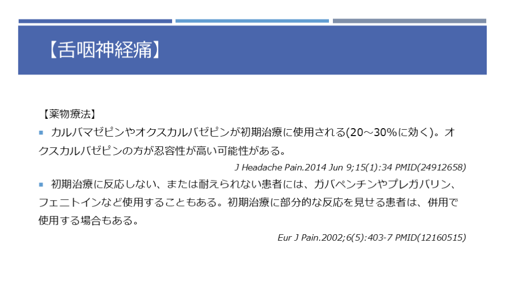 Eur J Pain.2002;6(5):403-7 PMID(12160515) 【舌咽神経痛】