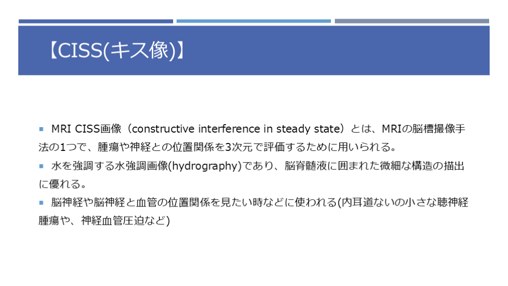 腫瘍や、神経血管圧迫など) 【CISS(キス像)】
