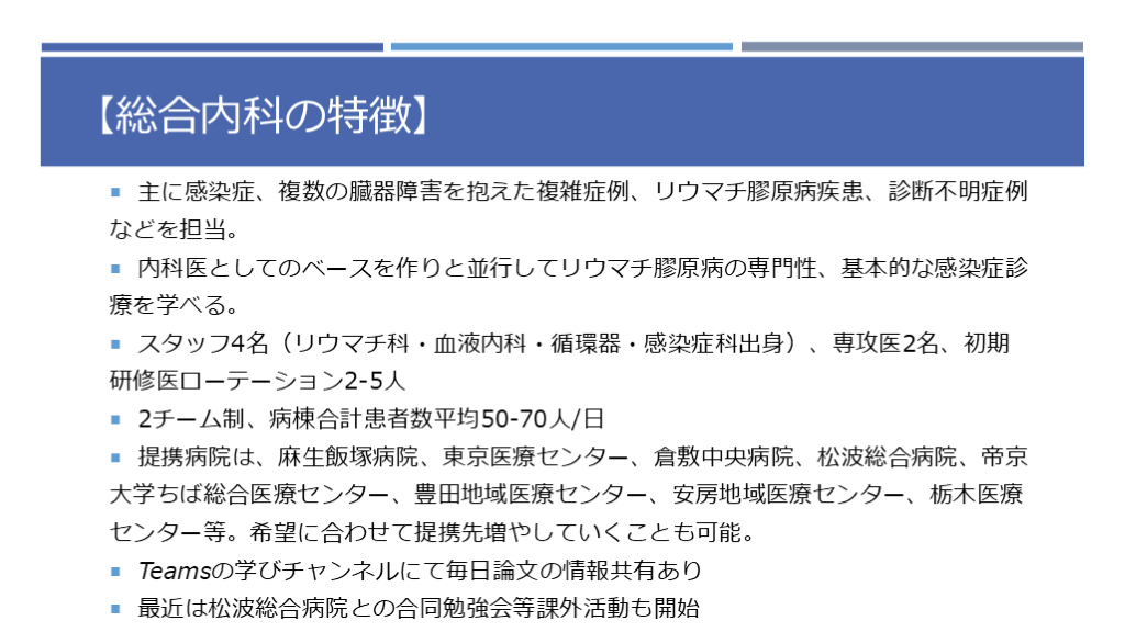 内科医としてのベースを作りと並行してリウマチ膠原病の専門性、基本的な感染症診