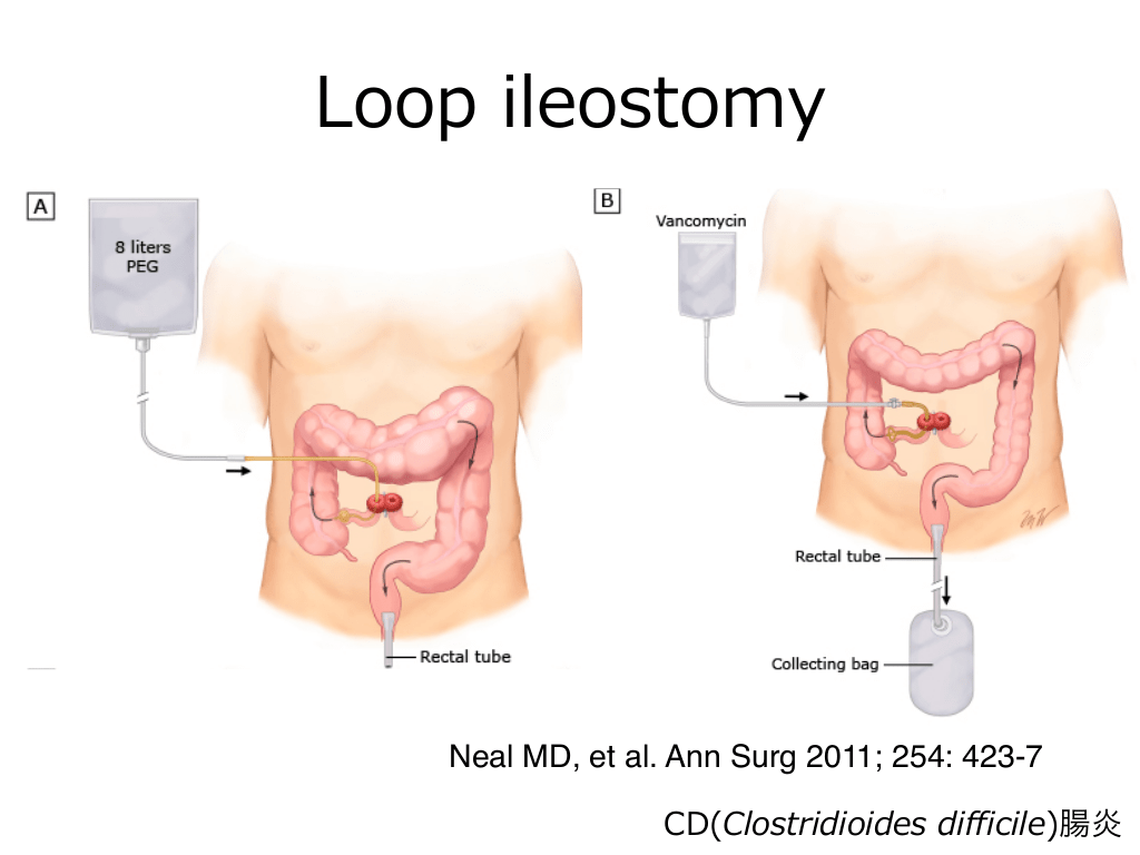 #100. Loop ileostomy Neal MD, et al. Ann Surg 2011; 254: 423-7 CD(Clostridioides difficile)腸炎