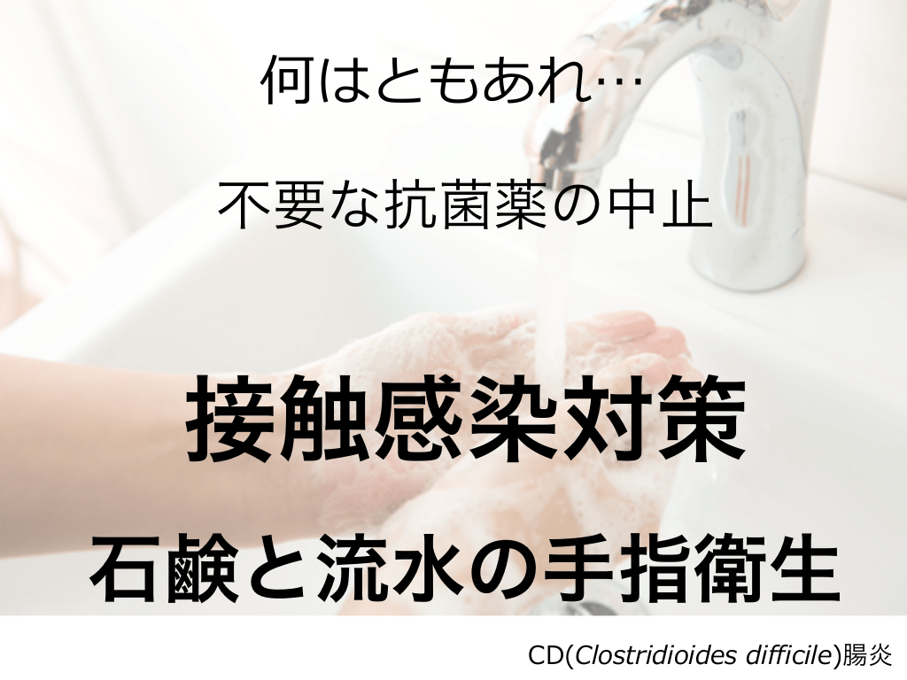 #102. 何はともあれ… 不要な抗菌薬の中止 接触感染対策 石鹸と流水の手指衛生 CD(Clostridioides difficile)腸炎