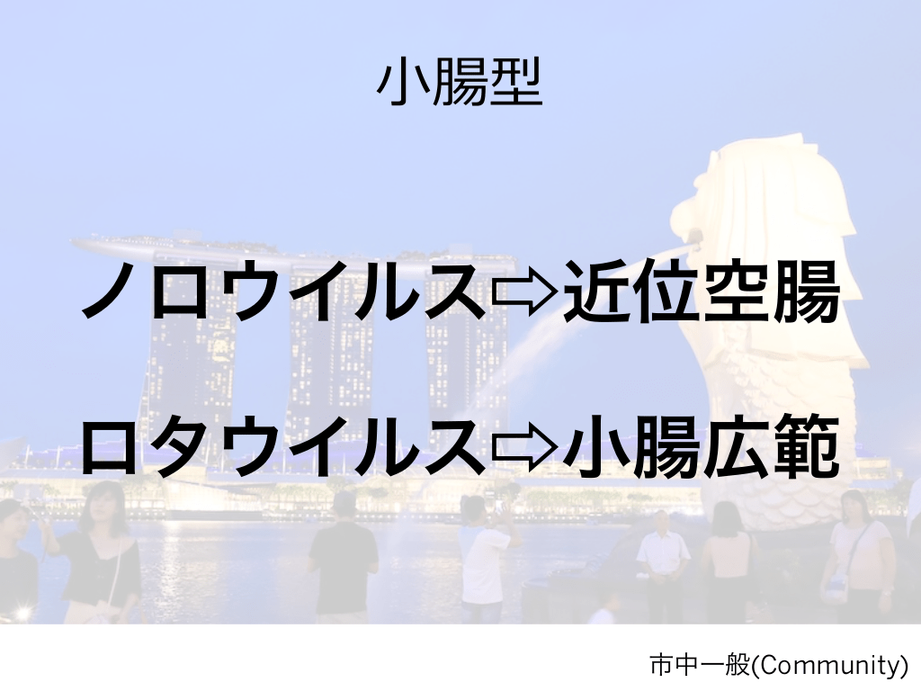 #17. ⼩腸型 ノロウイルス⇨近位空腸 ロタウイルス⇨小腸広範 市中一般(Community)