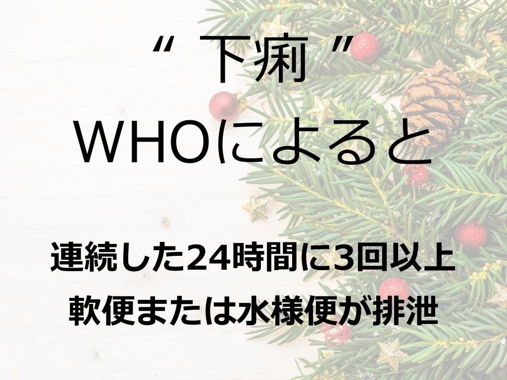 #2. “ 下痢 ” WHOによると 連続した24時間に3回以上 軟便または⽔様便が排泄