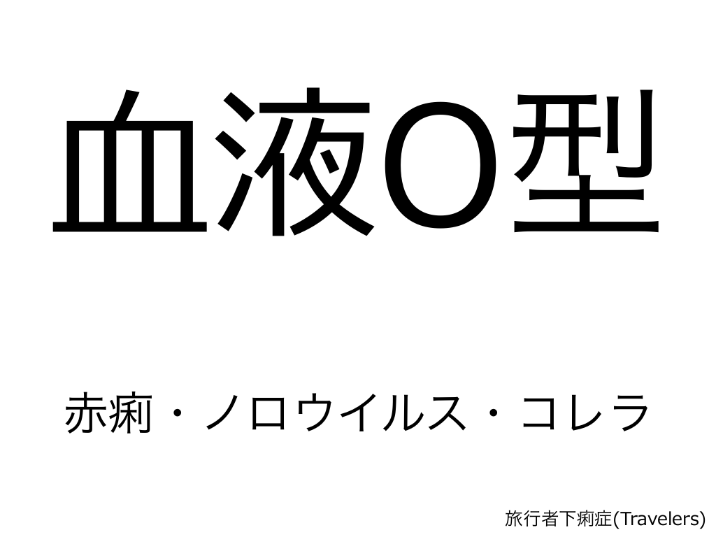 #57. ⾎液O型 赤痢・ノロウイルス・コレラ 旅行者下痢症(Travelers)