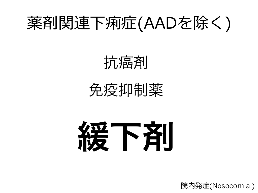 #63. 薬剤関連下痢症(AADを除く) 抗癌剤 免疫抑制薬 緩下剤 院内発症(Nosocomial)