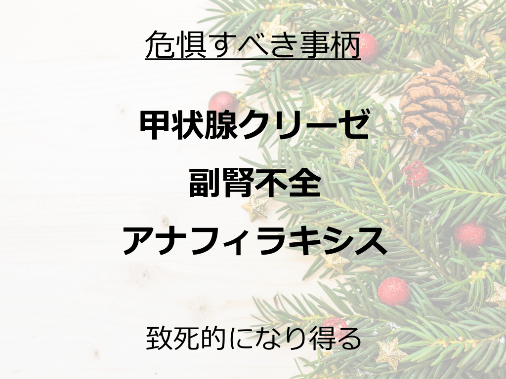 #7. 危惧すべき事柄 甲状腺クリーゼ 副腎不全 アナフィラキシス 致死的になり得る