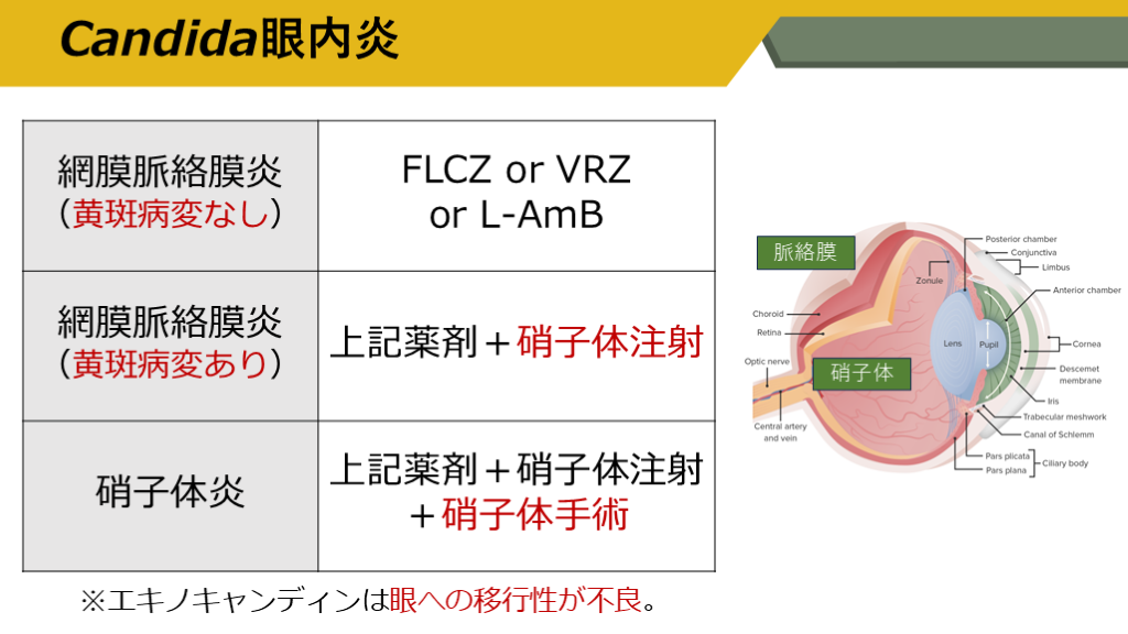 Candidaの治療と眼内炎の評価