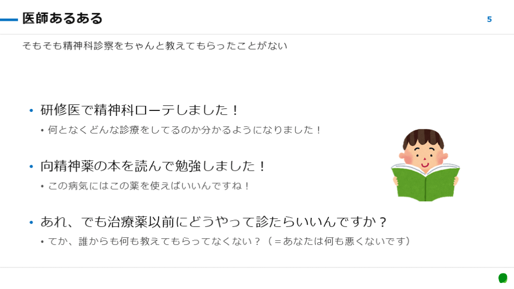 てか、誰からも何も教えてもらってなくない?(=あなたは何も悪くないです) 医師あるある そもそも精神科診察をちゃんと教えてもらったことがない