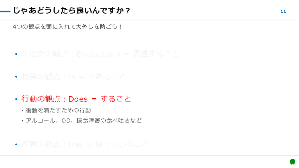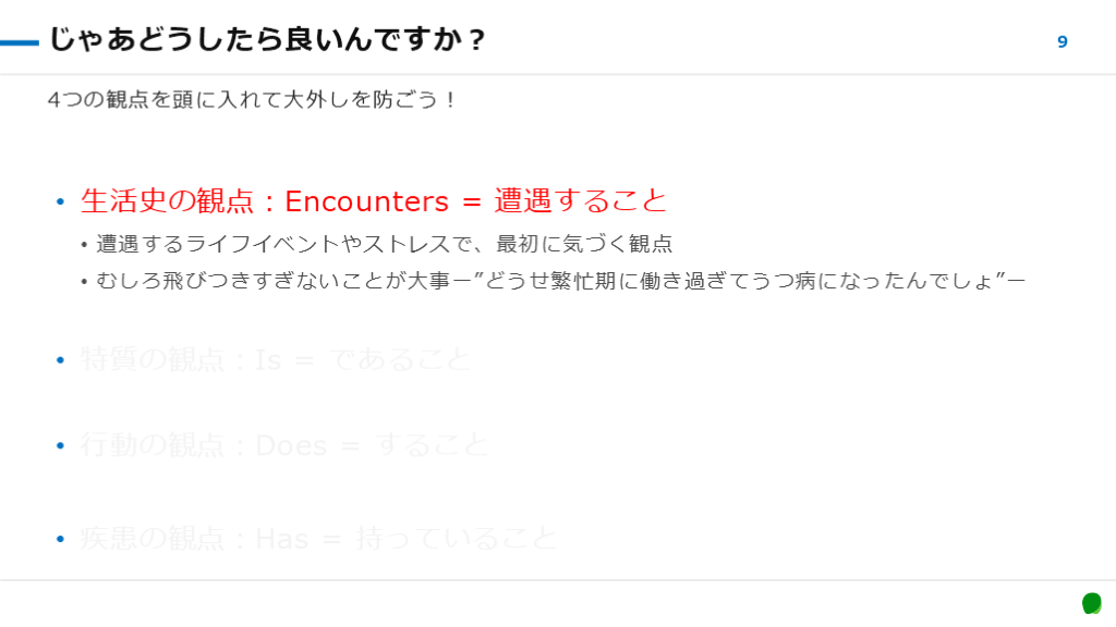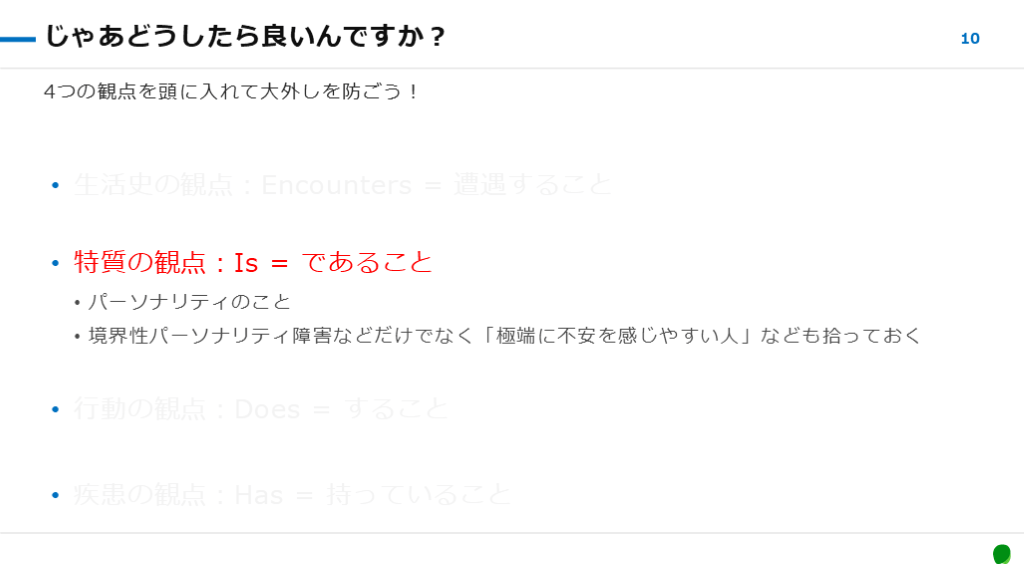 疾患の観点:Has = 持っていること じゃあどうしたら良いんですか? 4つの観点を頭に入れて大外しを防ごう!