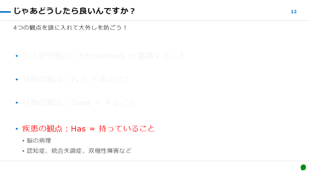 認知症、統合失調症、双極性障害など じゃあどうしたら良いんですか? 4つの観点を頭に入れて大外しを防ごう!