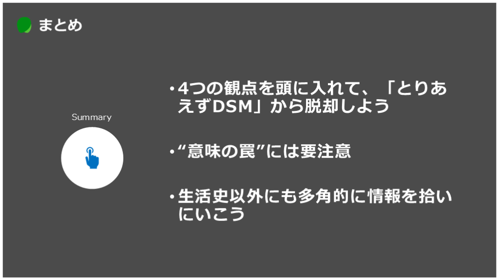 #18. 4つの観点を頭に入れて、「とりあえずDSM」から脱却しよう