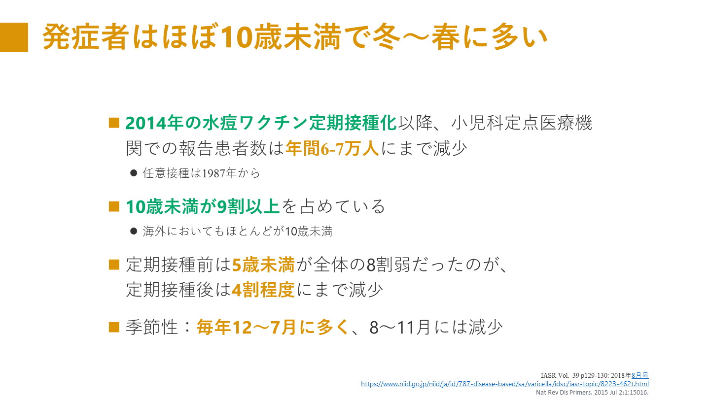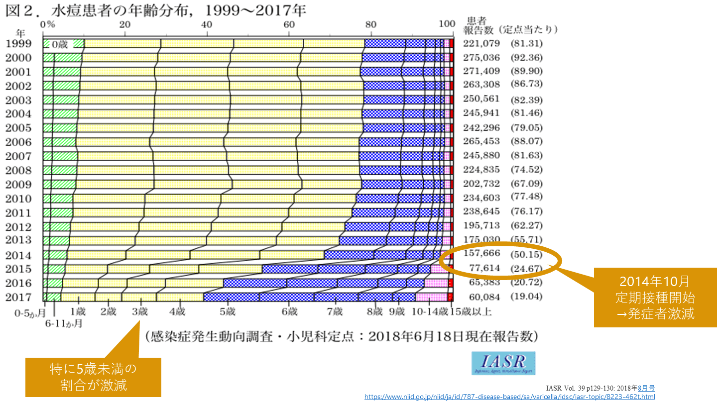 日本では特に2014年の定期接種以降、水痘患者は減っている。