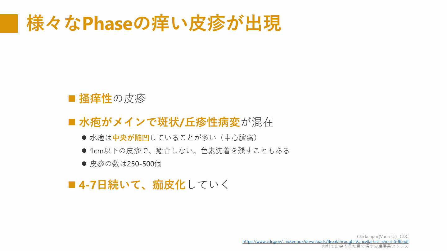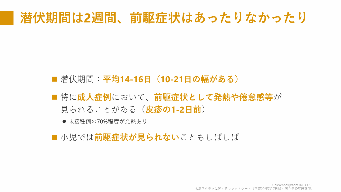 #8. 潜伏期間は2週間、前駆症状はあったりなかったり Chickenpox(Varicella), CDC