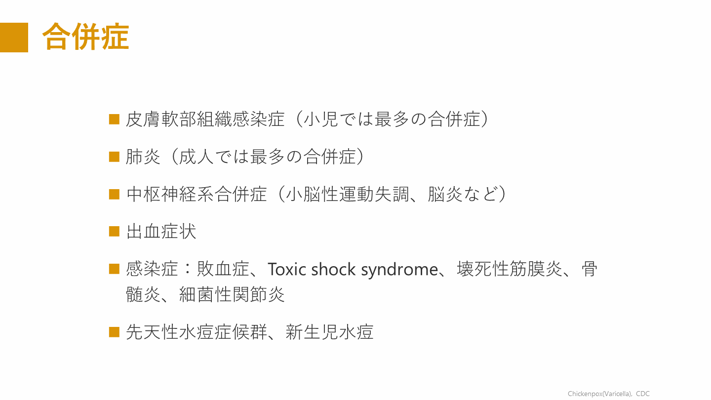 #14. 合併症 Chickenpox(Varicella), CDC 皮膚軟部組織感染症(小児では最多の合併症)