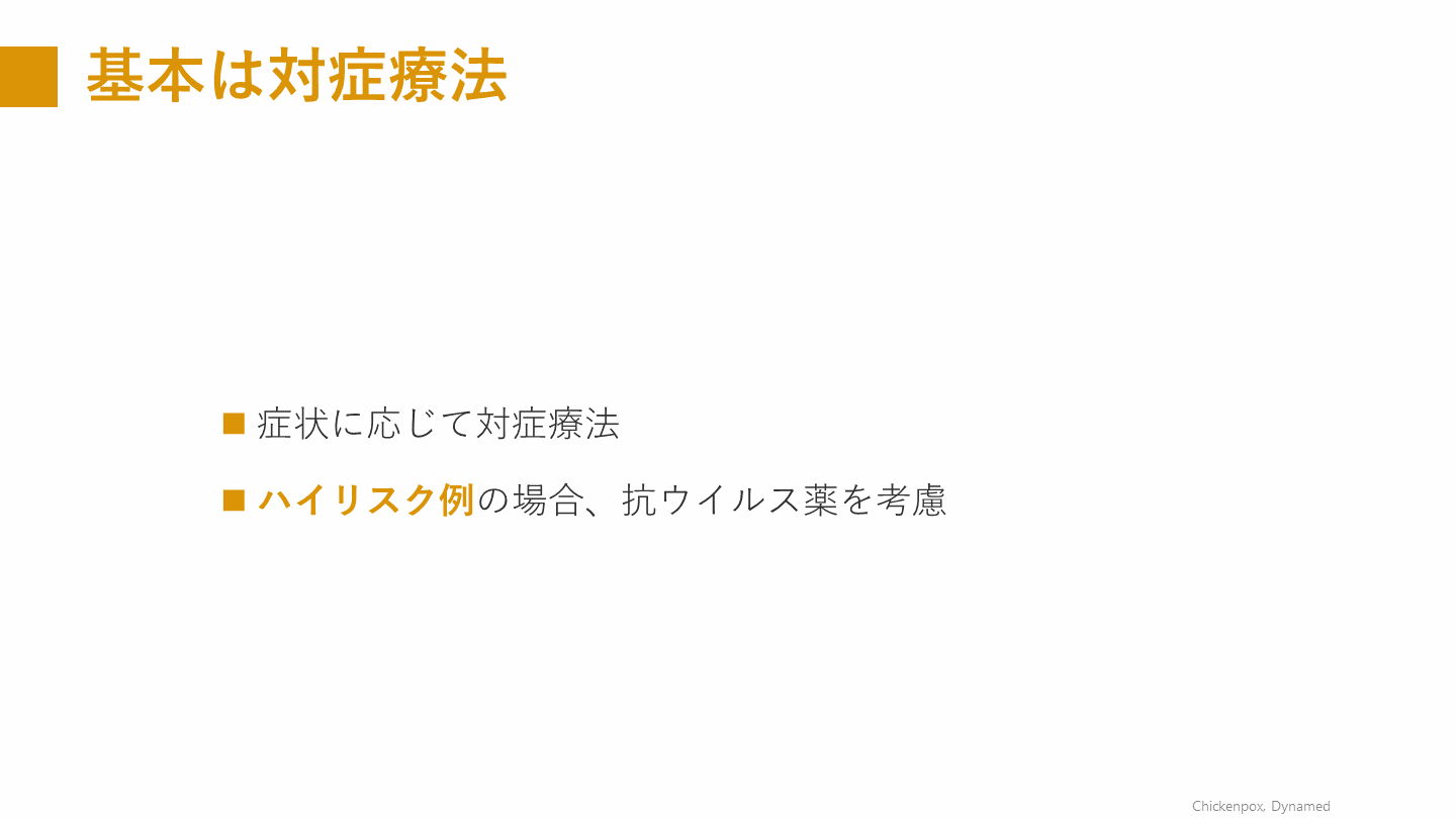#18. 基本は対症療法 Chickenpox, Dynamed 症状に応じて対症療法