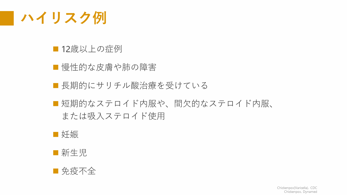 #19. ハイリスク例 Chickenpox(Varicella), CDC