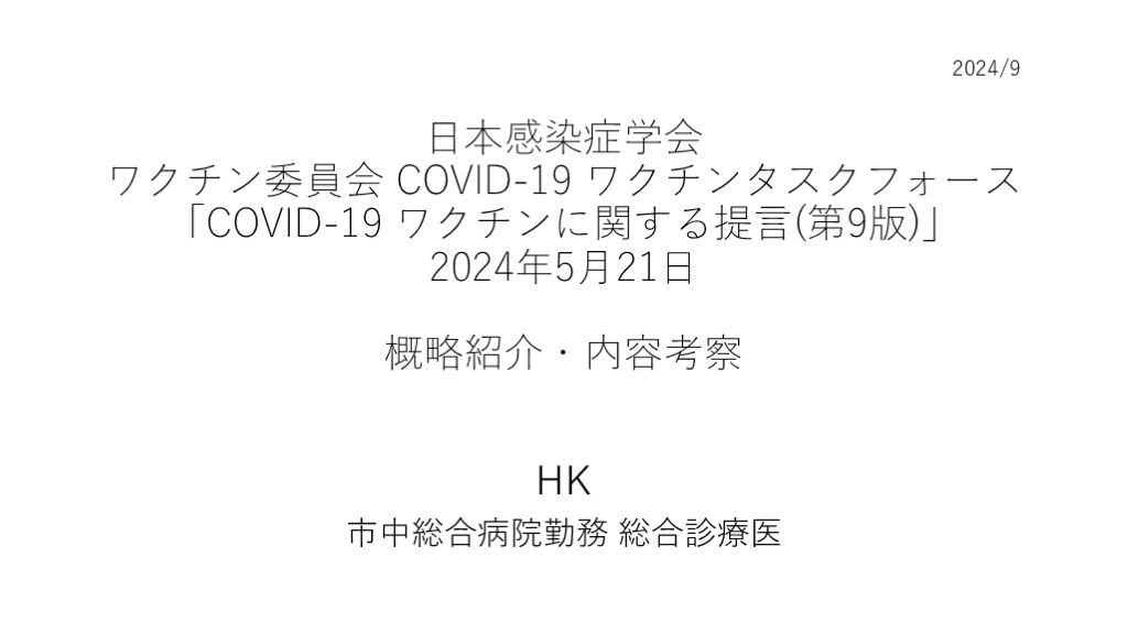 #7. 日本感染症学会 ワクチン委員会 COVID-19 ワクチンタスクフォース「COVID-19 ワクチンに関する提言(第9版)」2024年5月21日概略紹介・内容考察 HK