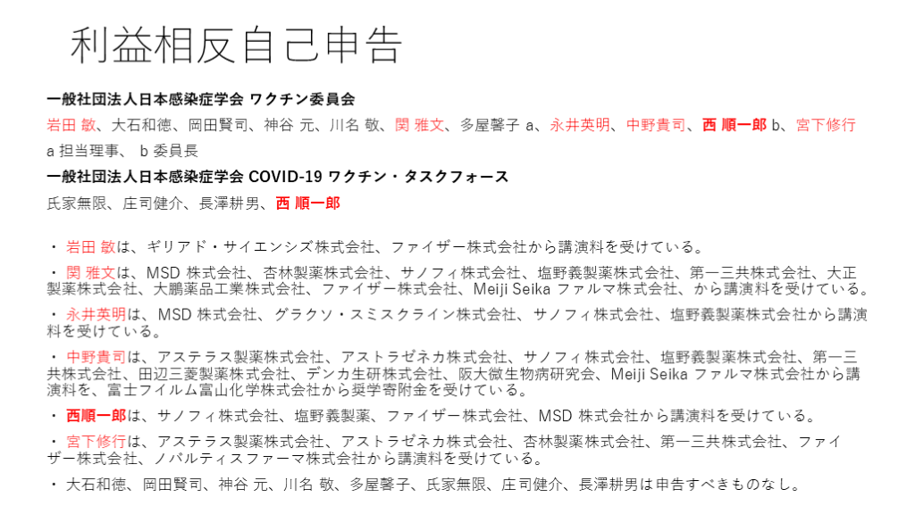 #42. 利益相反自己申告 一般社団法人日本感染症学会 ワクチン委員会