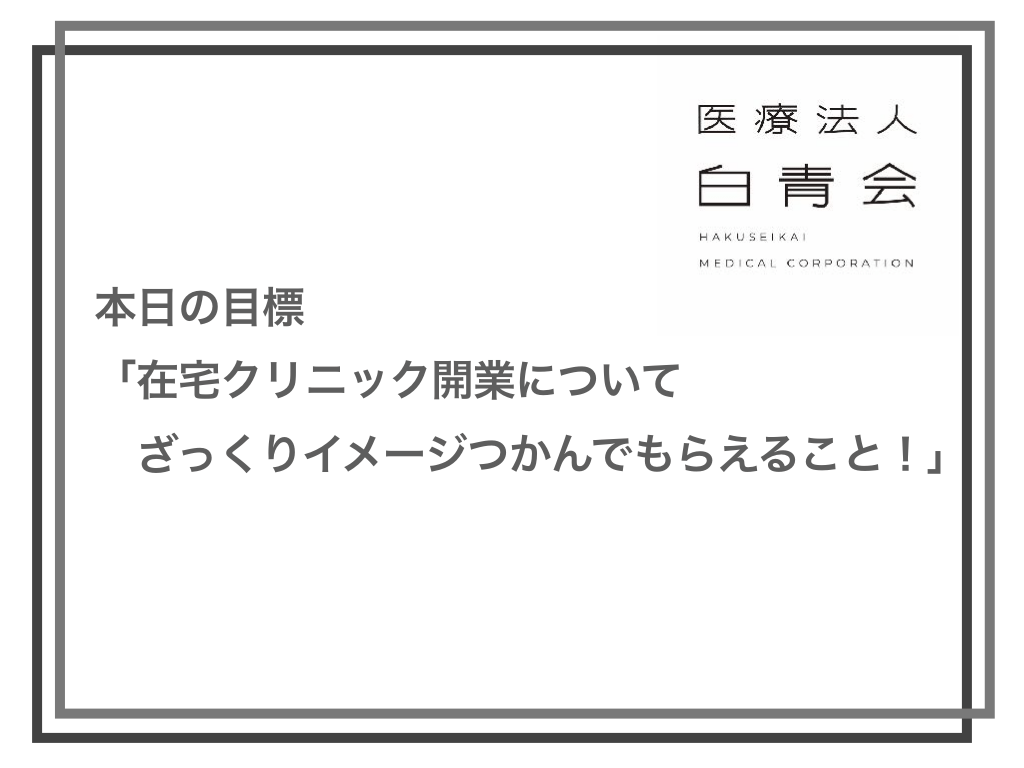 開業を目指す医師に必要な情報やノウハウを共有し、安心して在宅診療に取り組める環境の整え方を解説します。