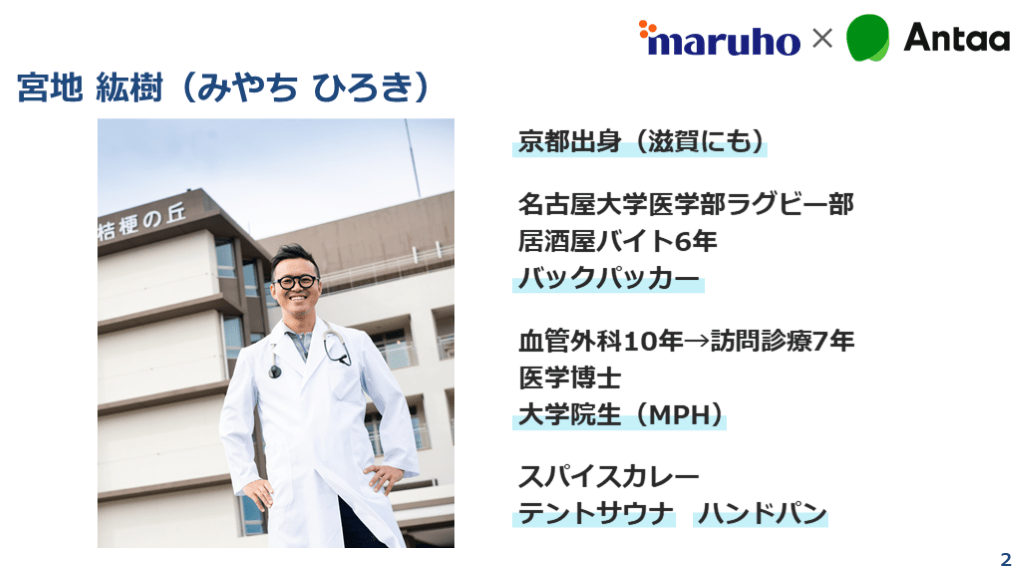 本スライドでは、地域医療について、地域医療を始めたきっかけやこれまで行った様々な活動を紹介しています。
