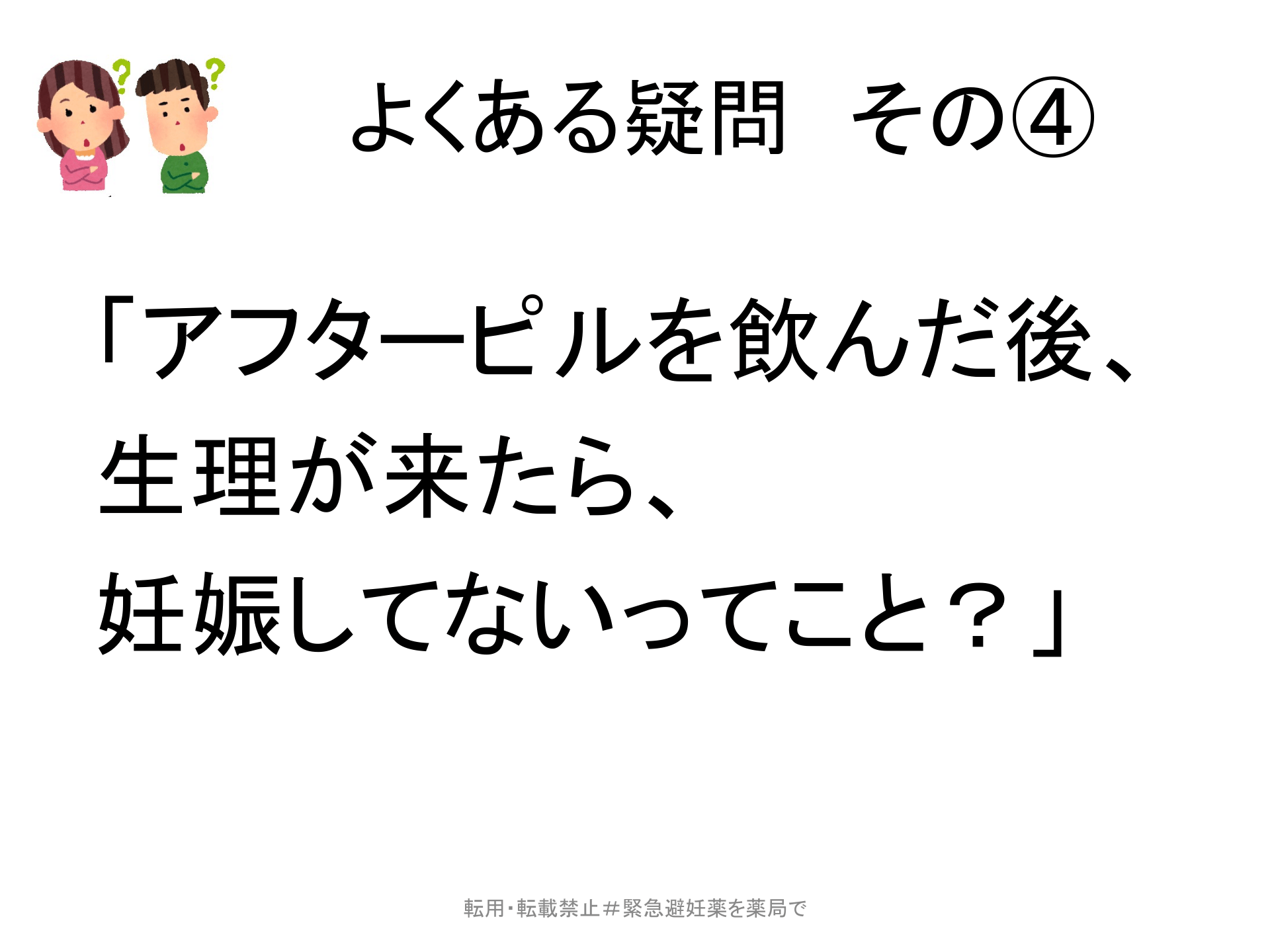 #15. よくある疑問 その④ 「アフターピルを飲んだ後、 生理が来たら、 妊娠してないってこと?」 転用・転載禁止#緊急避妊薬を薬局で