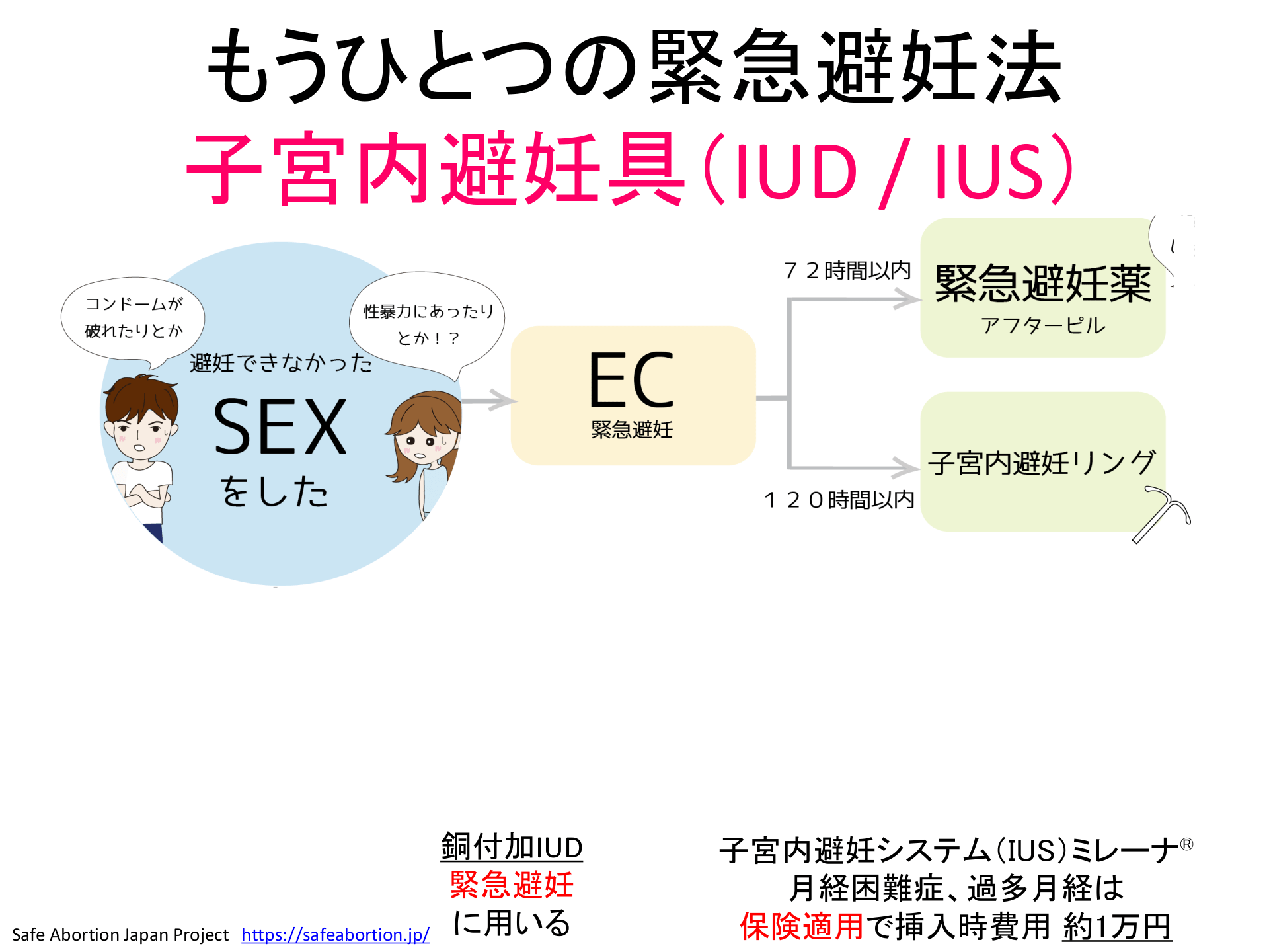 #4. もうひとつの緊急避妊法 子宮内避妊具(IUD / IUS) Safe Abortion Japan Project https://safeabortion.jp/ 銅付加IUD 緊急避妊 に用いる 子宮内避妊システム(IUS)ミレーナ® 月経困難症、過多月経は 保険適用で挿入時費用 約1万円