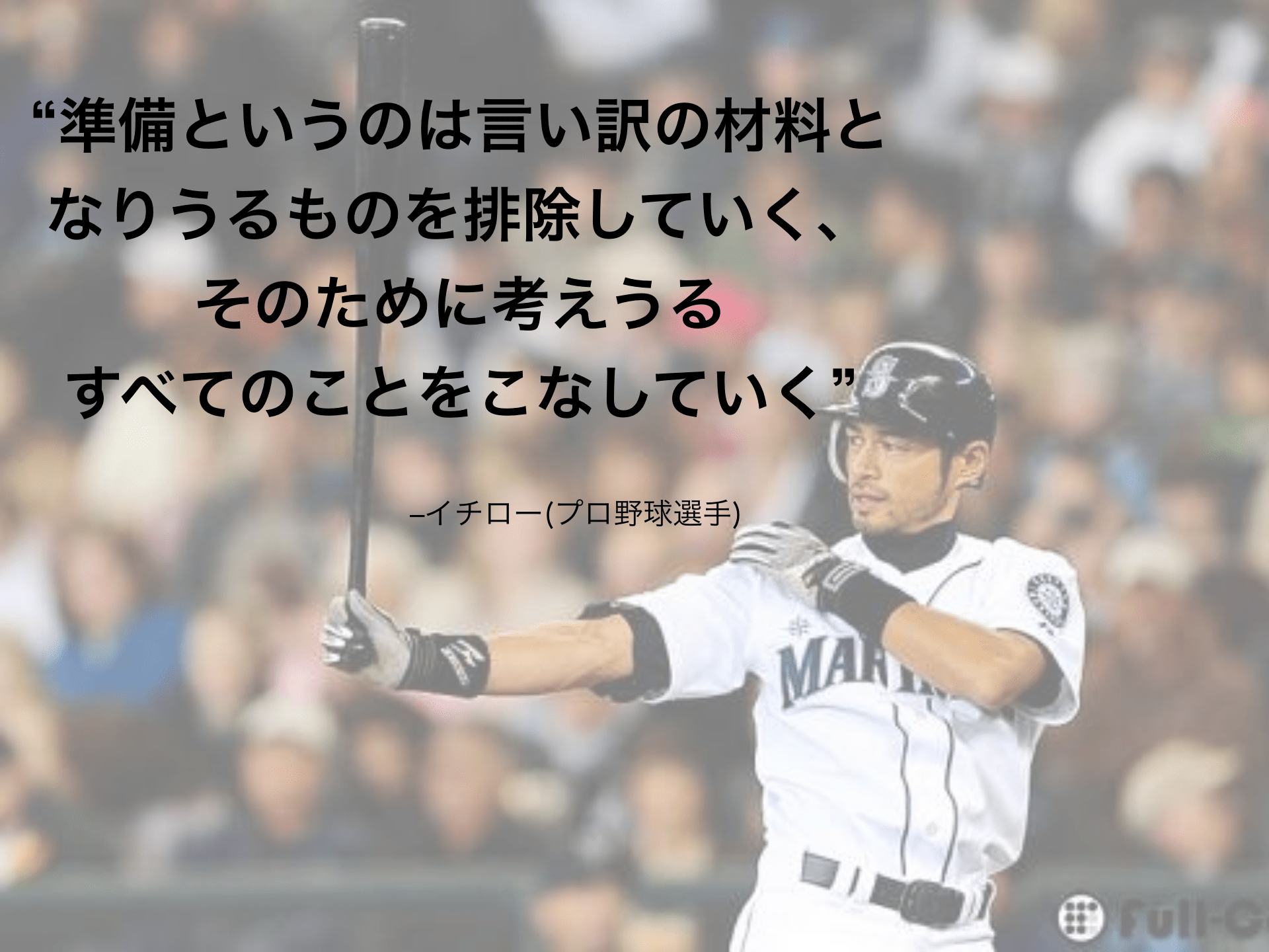 #19. “準備というのは言い訳の材料と なりうるものを排除していく、 そのために考えうる すべてのことをこなしていく” ‒イチロー(プロ野球選手)