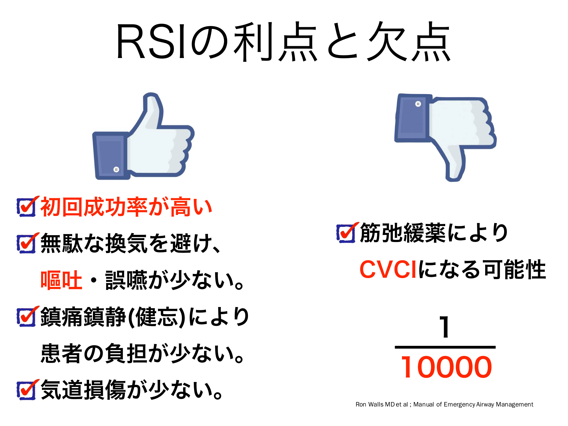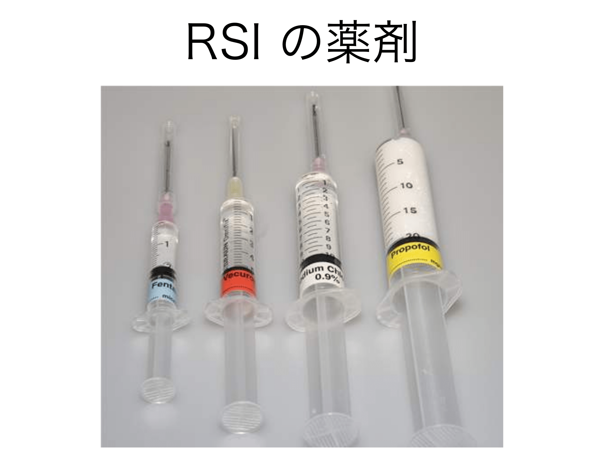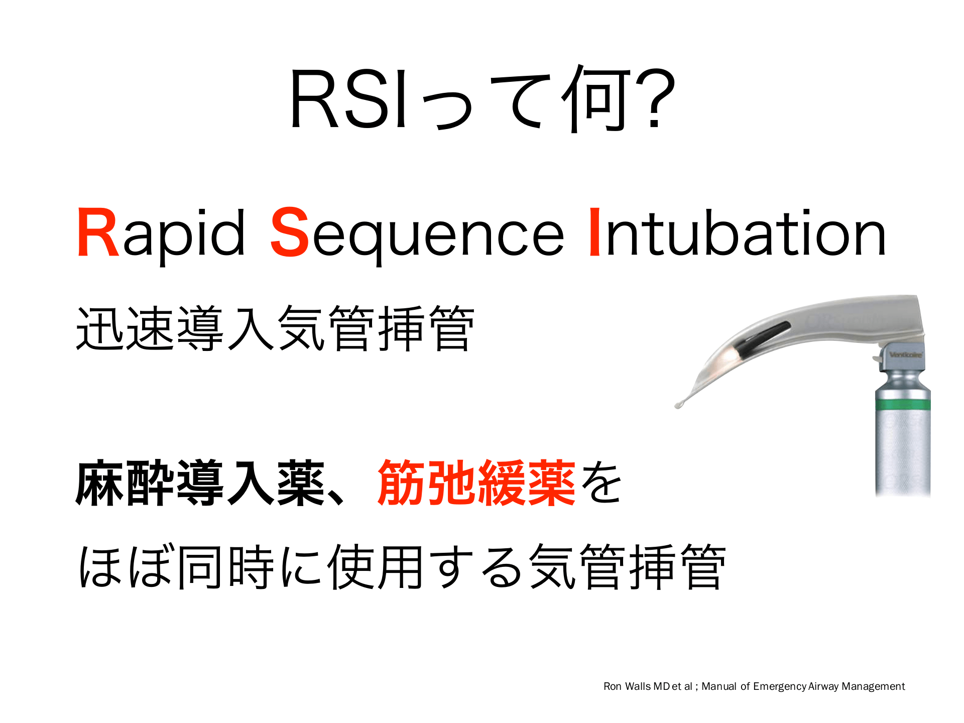 #23. RSIって何? Rapid Sequence Intubation 迅速導入気管挿管 麻酔導入薬、筋弛緩薬を ほぼ同時に使用する気管挿管 Ron Walls MD et al ; Manual of Emergency Airway Management