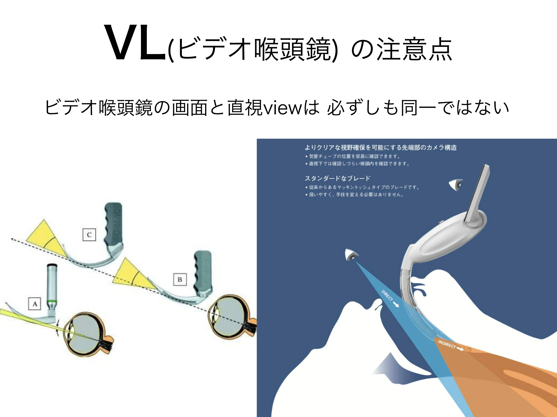 #50. VL(ビデオ喉頭鏡) の注意点 ビデオ喉頭鏡の画面と直視viewは 必ずしも同一ではない