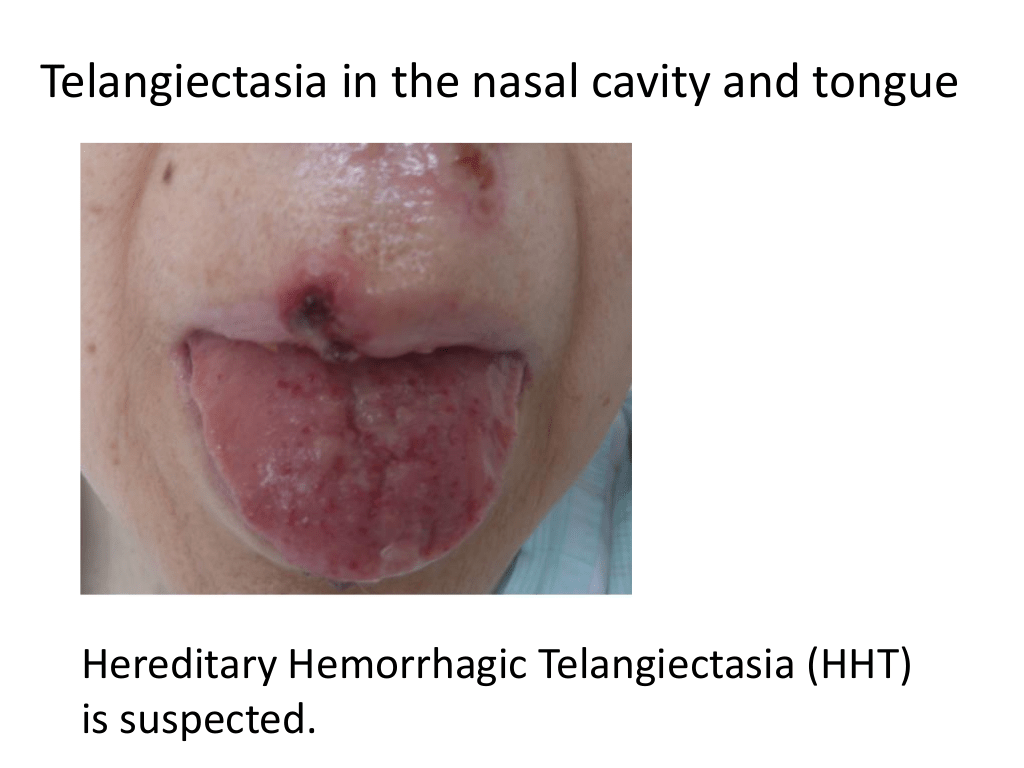 #12. Telangiectasia in the nasal cavity and tongue Hereditary Hemorrhagic Telangiectasia (HHT) is suspected.