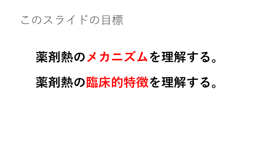 #2. このスライドの目標 薬剤熱のメカニズムを理解する。