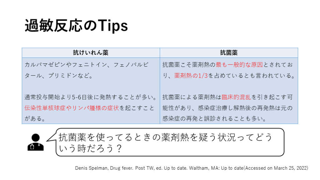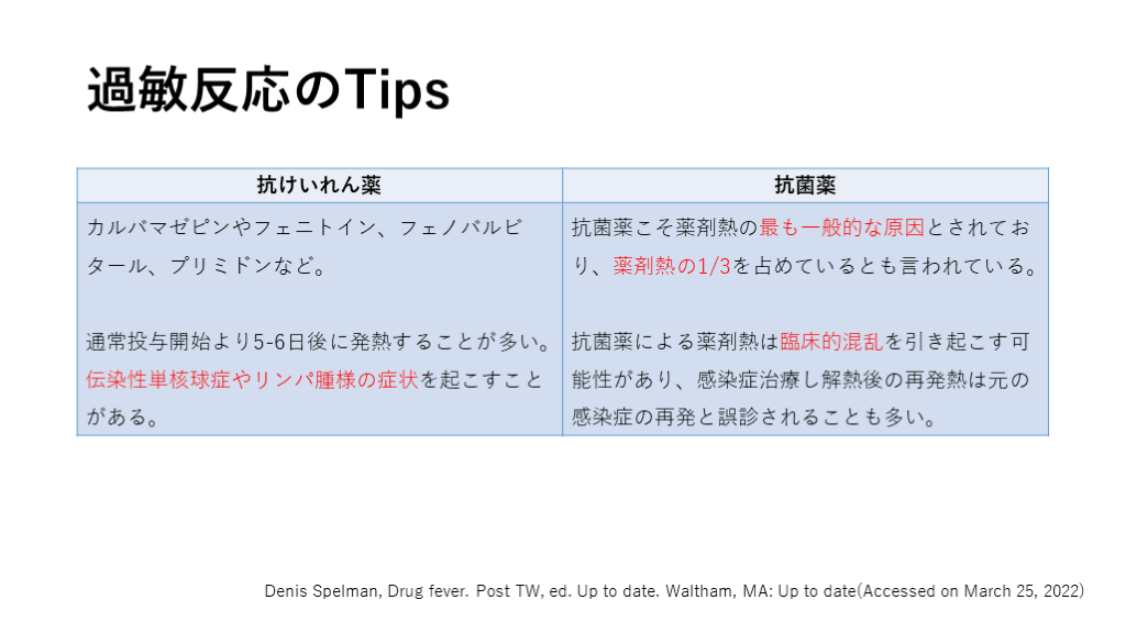 #11. 過敏反応のTips Denis Spelman, Drug fever. Post TW, ed. Up to date. Waltham, MA: Up to date(Accessed on March 25, 2022)