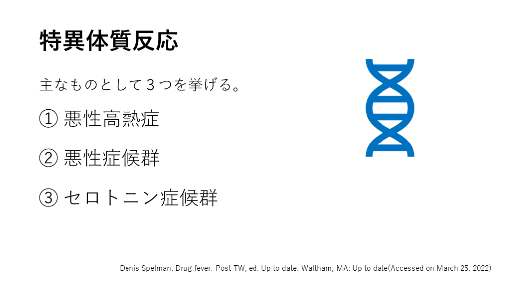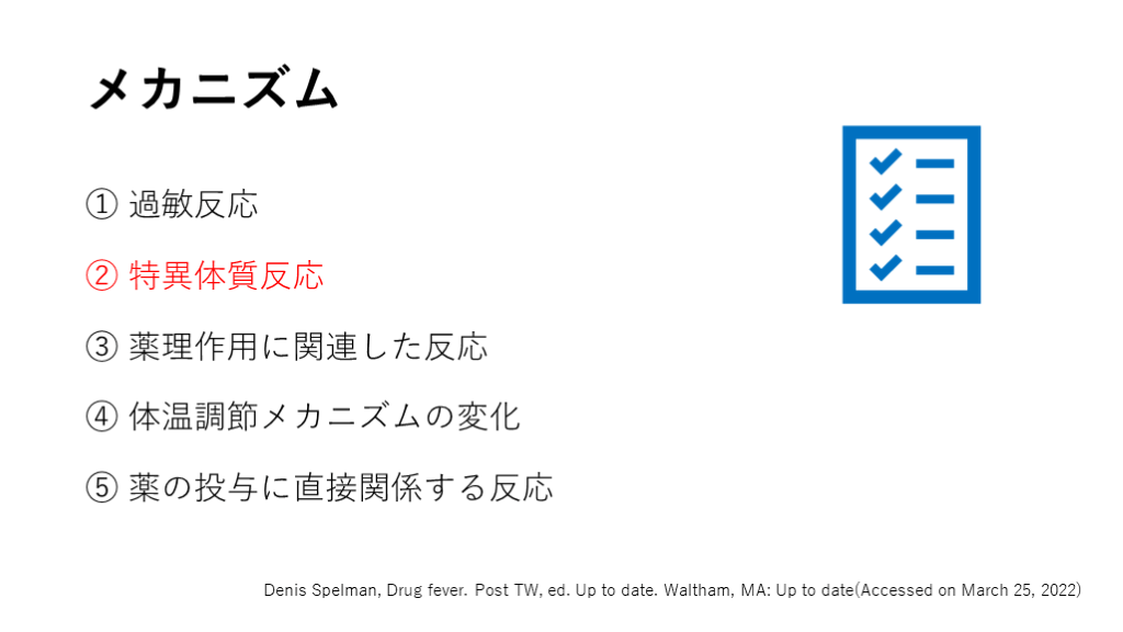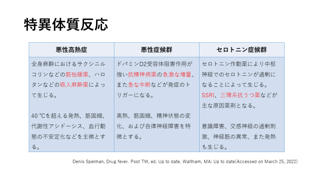 #18. 特異体質反応 Denis Spelman, Drug fever. Post TW, ed. Up to date. Waltham, MA: Up to date(Accessed on March 25, 2022)
