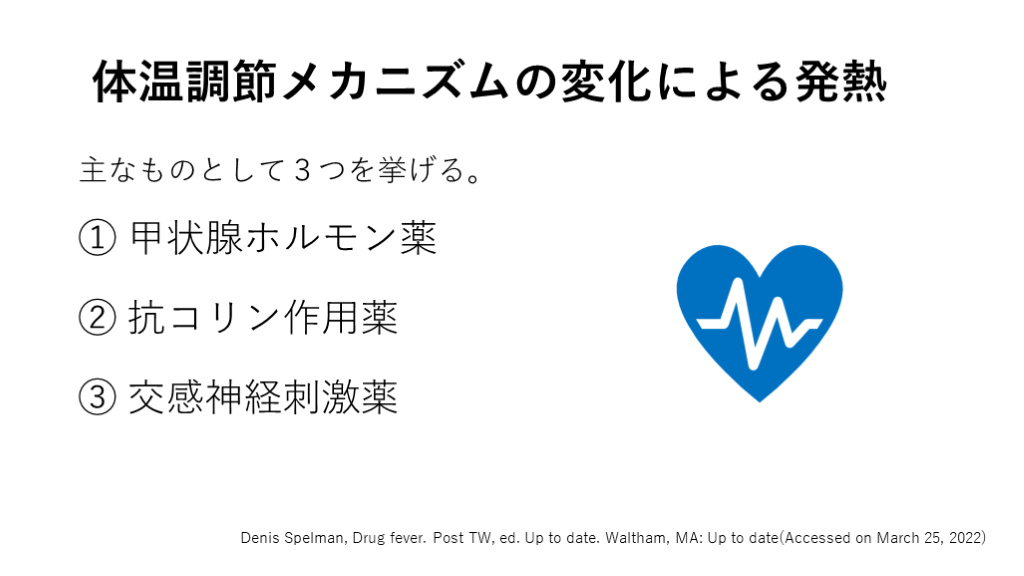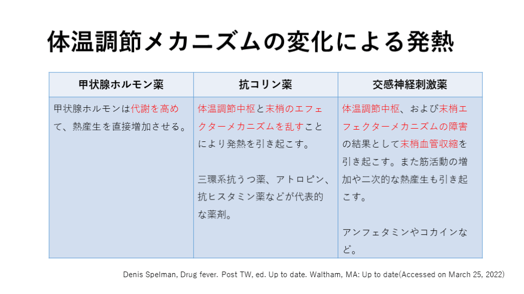#28. 体温調節メカニズムの変化による発熱 Denis Spelman, Drug fever. Post TW, ed. Up to date. Waltham, MA: Up to date(Accessed on March 25, 2022)