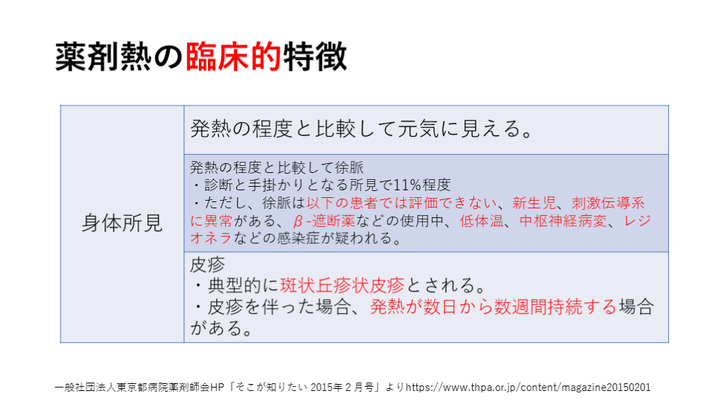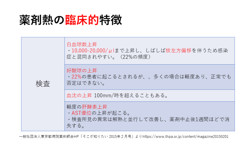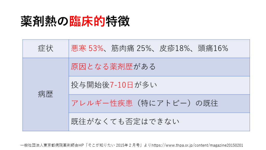 #38. 薬剤熱の臨床的特徴 一般社団法人東京都病院薬剤師会HP「そこが知りたい 2015年2月号」よりhttps://www.thpa.or.jp/content/magazine20150201