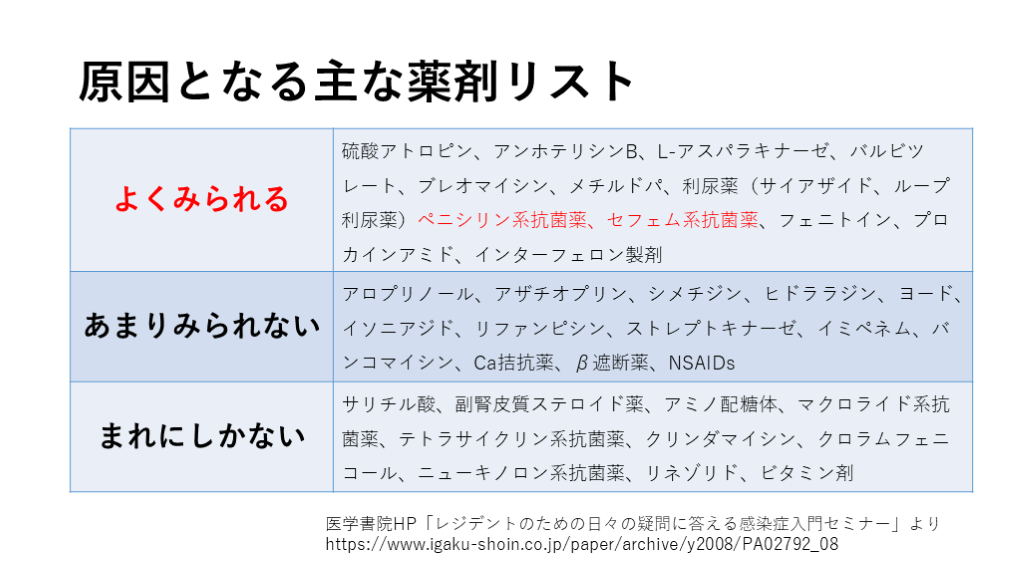 ③ 頻用抗菌薬が薬剤熱の原因となりやすいことを忘れない。