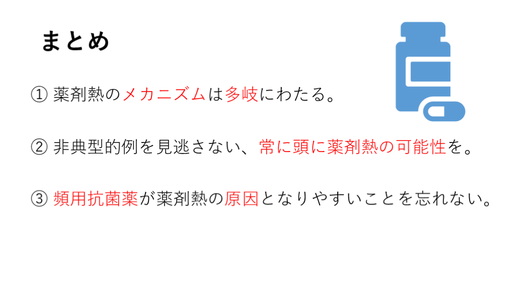 #40. まとめ ① 薬剤熱のメカニズムは多岐にわたる。