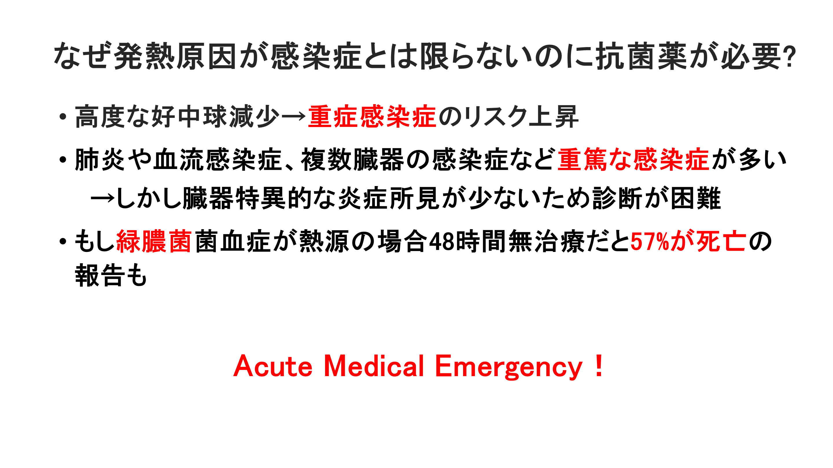 #2. なぜ発熱原因が感染症とは限らないのに抗菌薬が必要? 高度な好中球減少→重症感染症のリスク上昇