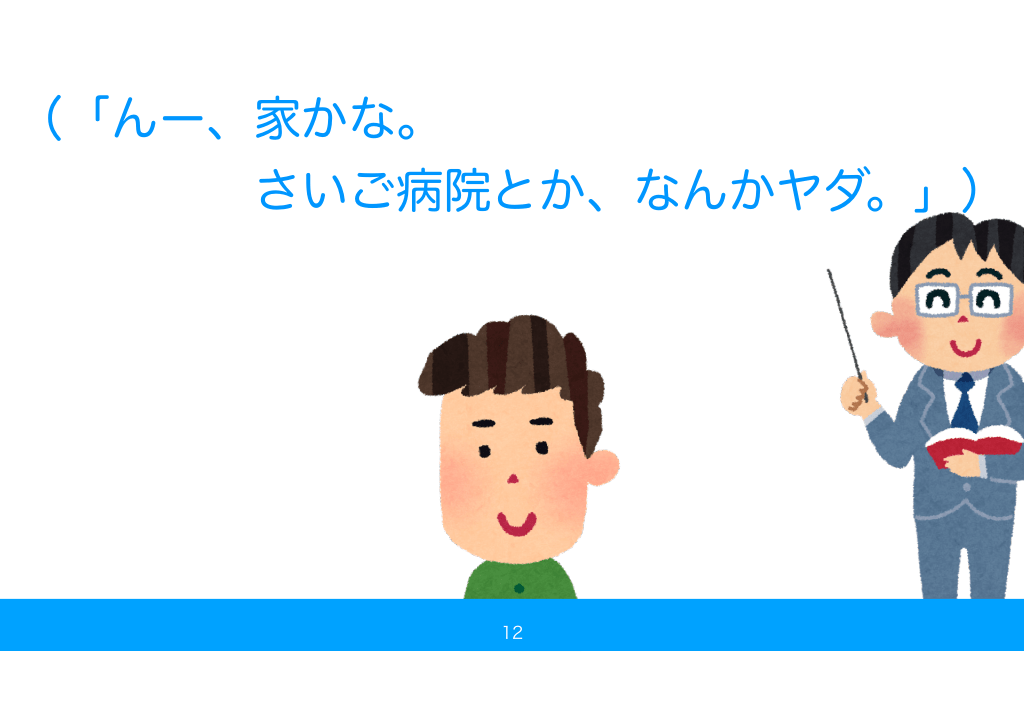 #12. (「んー、家かな。 さいご病院とか、なんかヤダ。」) 12