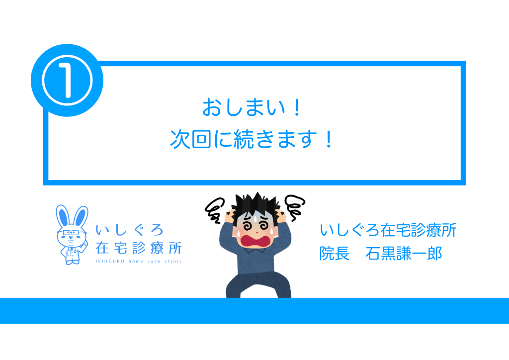 #16. ① おしまい! 次回に続きます! いしぐろ在宅診療所 院長 石黒謙一郎