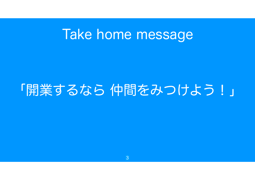 #3. Take home message 「開業するなら 仲間をみつけよう!」 3