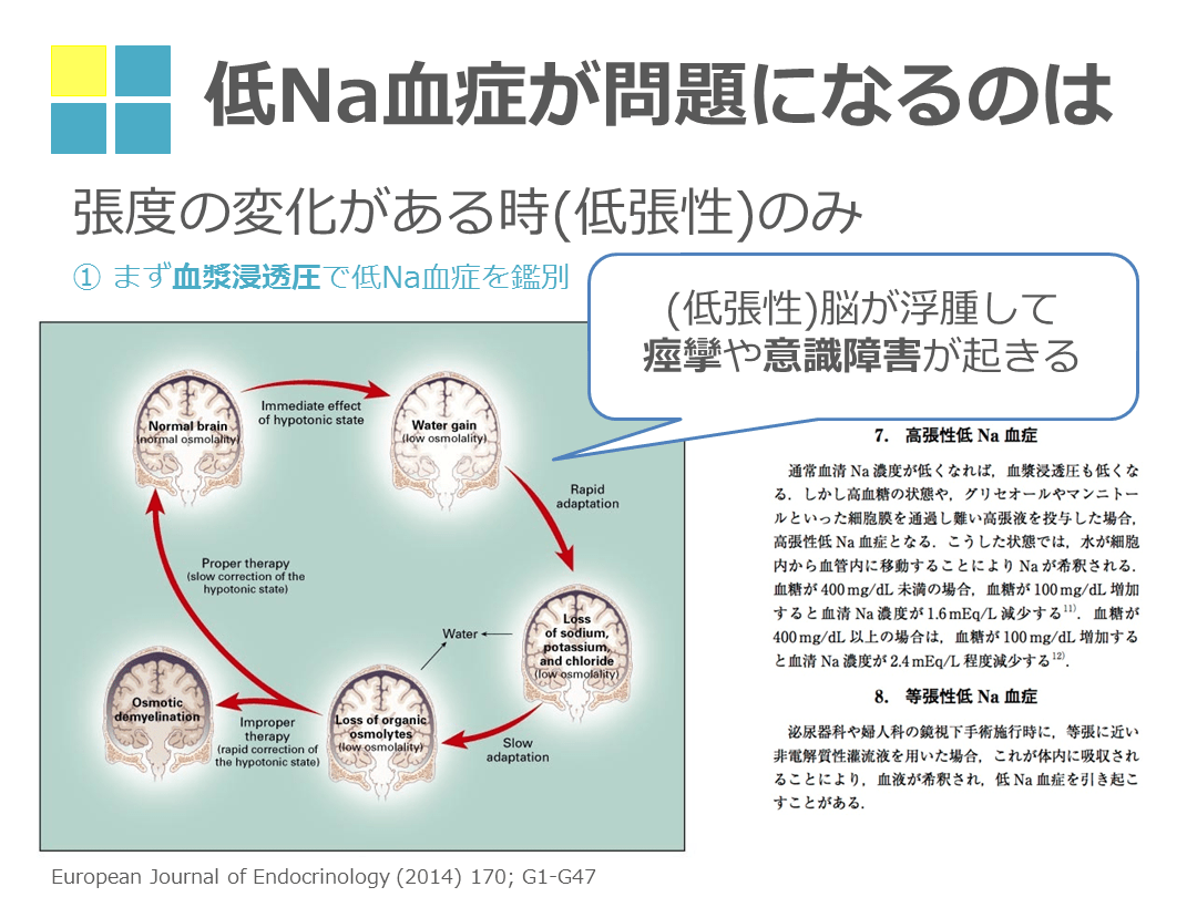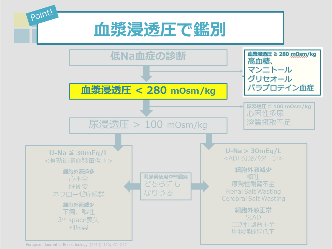 痙攣や意識障害が起きる ① まず血漿浸透圧で低Na血症を鑑別 European Journal of Endocrinology (2014) 170; G1-G47