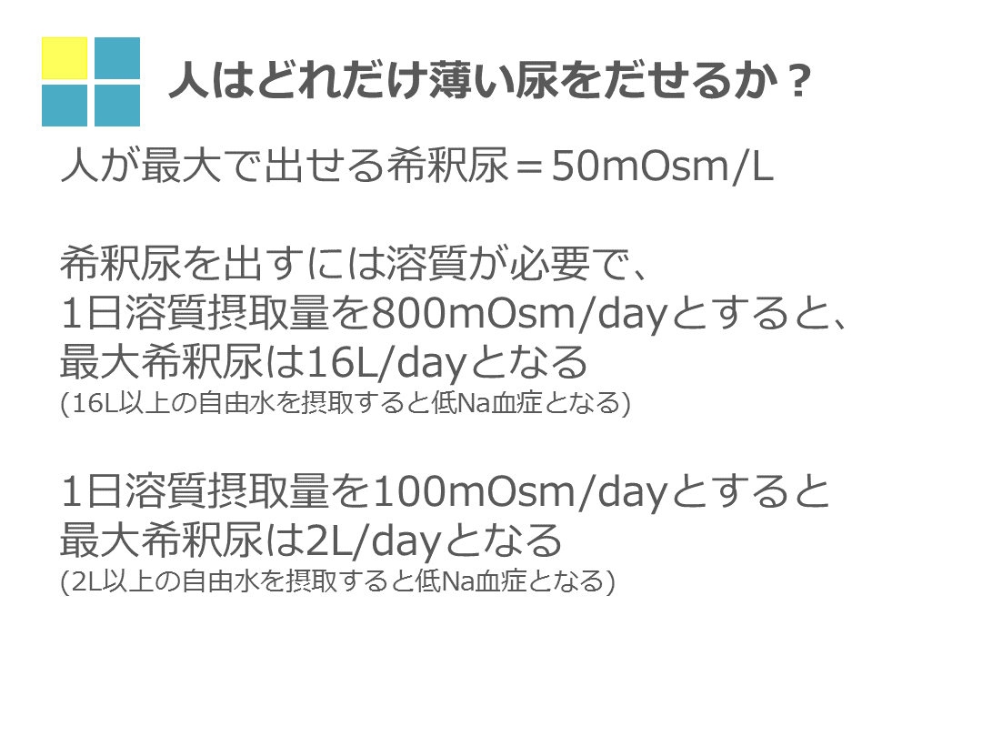 #9. 人はどれだけ薄い尿をだせるか? 人が最大で出せる希釈尿=50mOsm/L