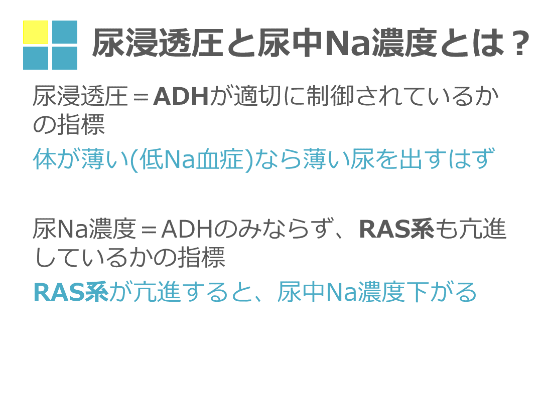 尿Na濃度=ADHのみならず、RAS系も亢進しているかの指標