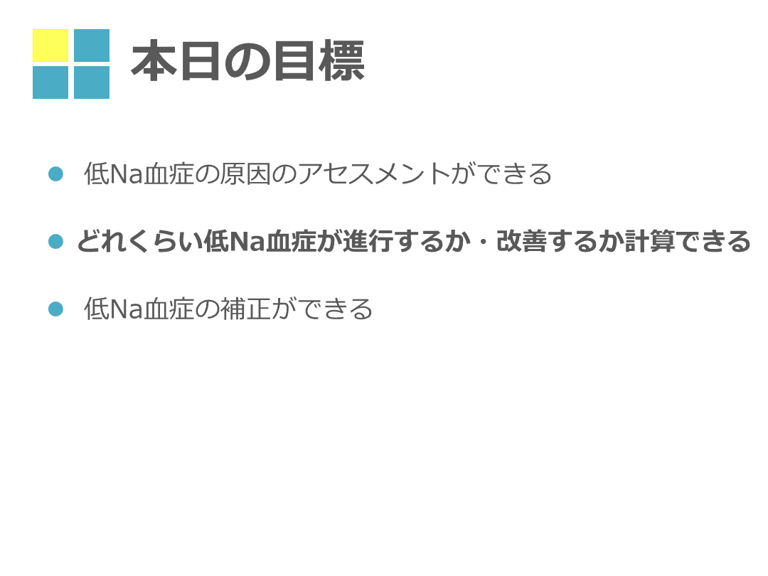 #38. 本日の目標 低Na血症の原因のアセスメントができる