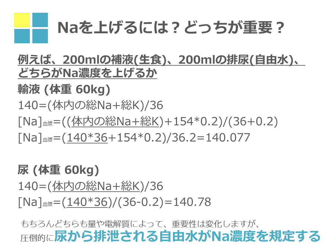 計算式はよく分かったが、現実は結構Na濃度上がるし、