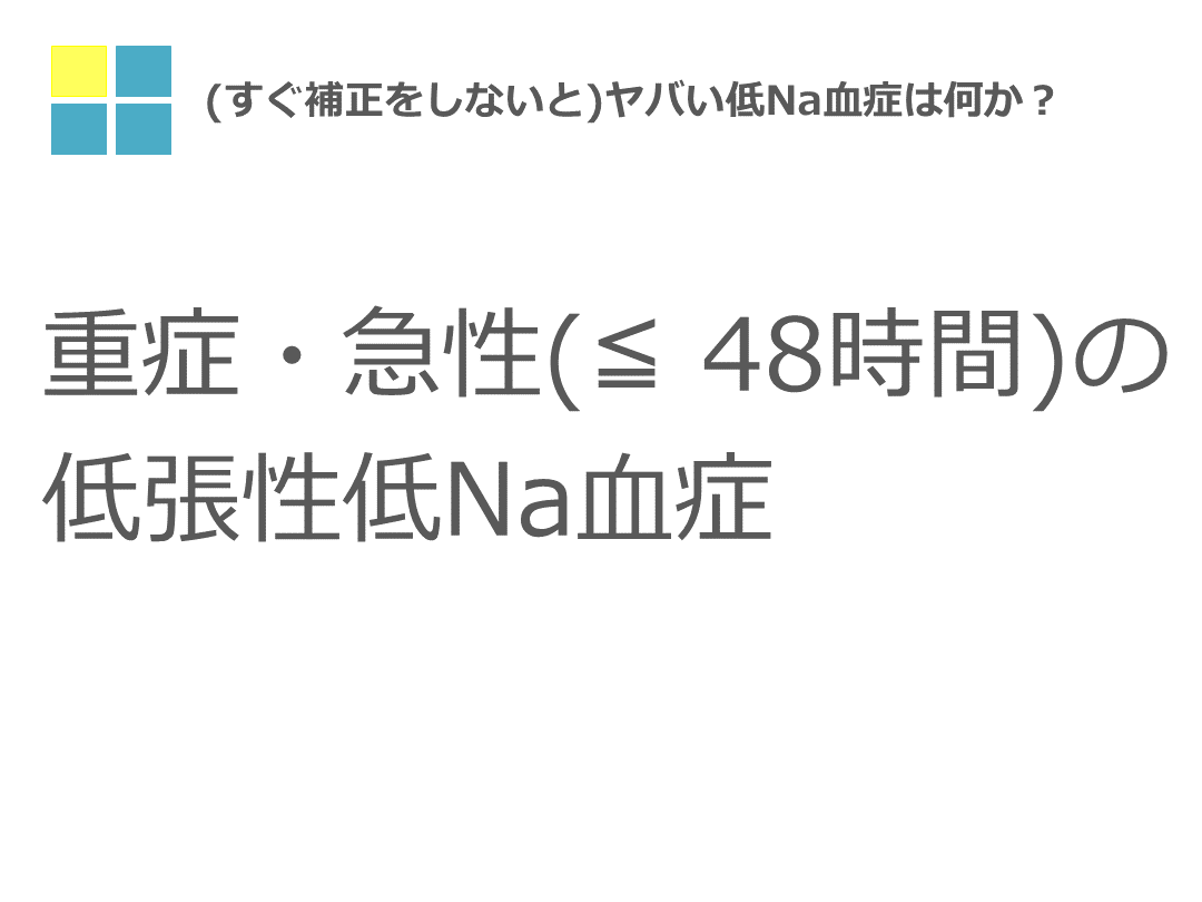 #39. (すぐ補正をしないと)ヤバい低Na血症は何か? 重症・急性(≦ 48時間)の