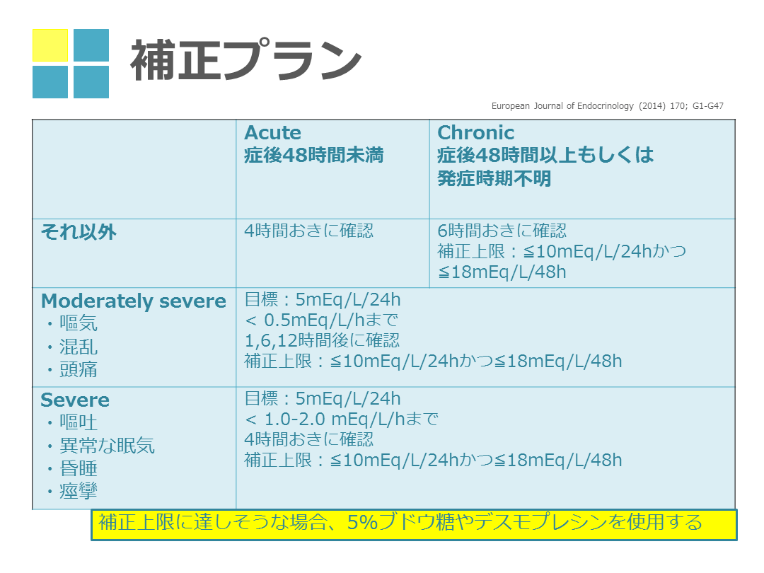 #42. 補正プラン 補正上限に達しそうな場合、5%ブドウ糖やデスモプレシンを使用する European Journal of Endocrinology (2014) 170; G1-G47